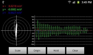 pielietojumu, reaģē uz ierīces kustību, izmaiņas fiksē grafikā. Fizikas